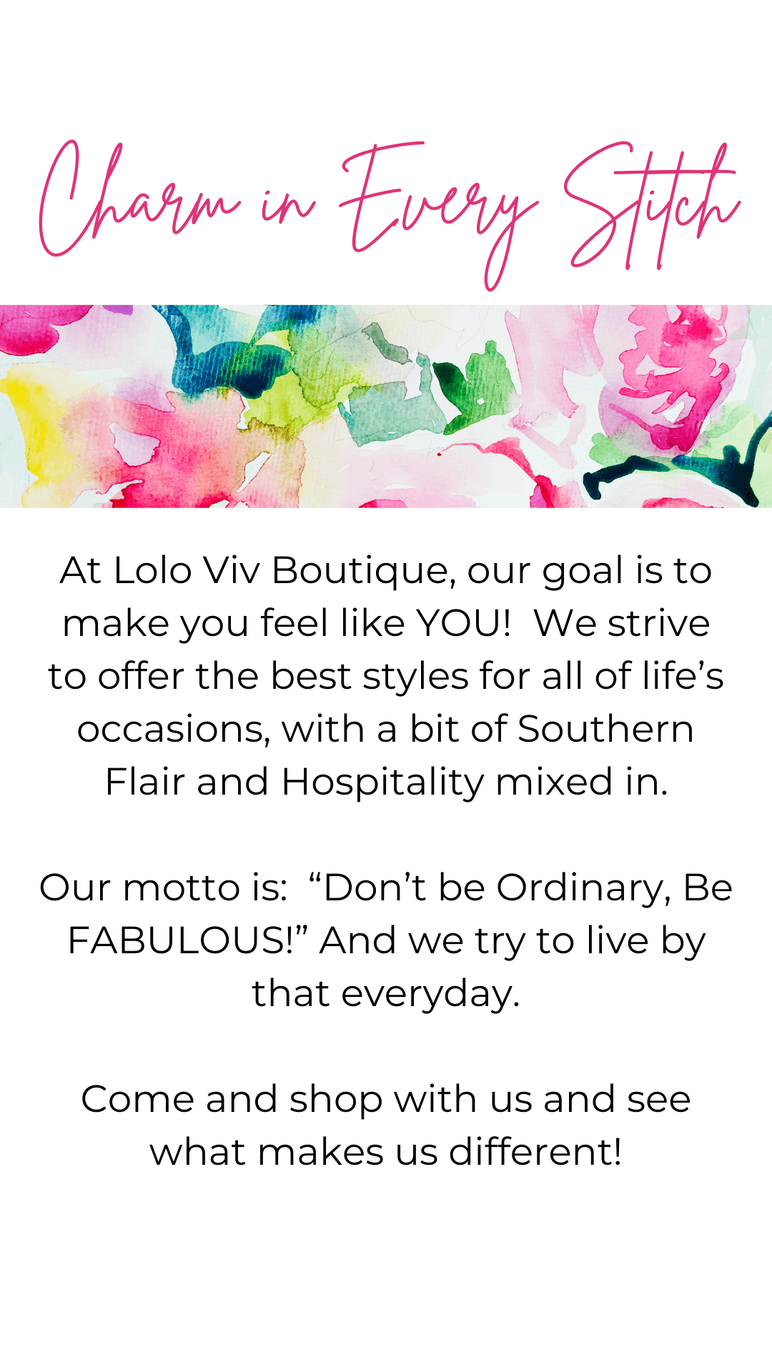 I'm Whitney, mother to two beautiful children, and wife to my wonderful husband, Chris. I'm the owner of Lolo Viv named after my daughter, Lorelei Vivienne, where we offer timeless styles and affordable fashion for women of all ages and sizes. We provide a selection where many generations can all enjoy a shopping experience together! We take pride in offering comfy clothes for running errands, to business attire for work, to trendy, beautiful styles for date nights and your most special occassions. Our styles are quality, unique and affordable.