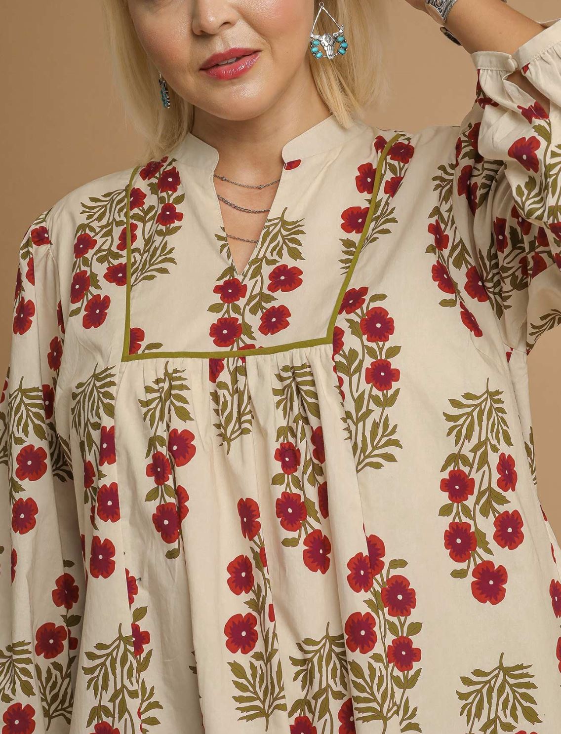 Sweet, breezy, and made for those golden fall days — the Meadowlane Dress brings effortless charm to your wardrobe. With its babydoll tunic style and playful floral print, this dress pairs beautifully with boots and a crossbody for an easy, put-together look.