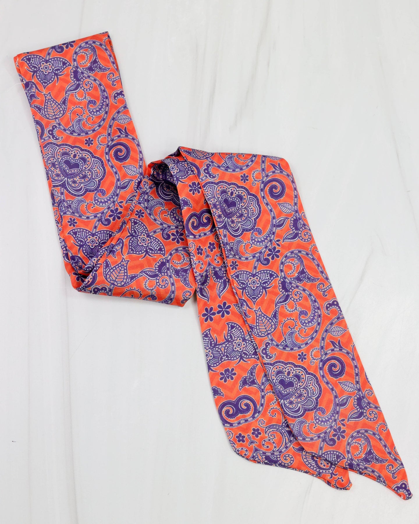 Add a fierce and stylish touch to your game day look with the Swamp Spirit Scarf in bold orange and blue! This smooth satin-like twilly is the ultimate versatile accessory—tie it around your neck, wrist, ponytail, or even loop it onto your bag or cowgirl boots for that extra Gator flair. Whether you’re cheering in The Swamp or showing team pride around town, this scarf is the perfect finishing touch to your game day outfit!