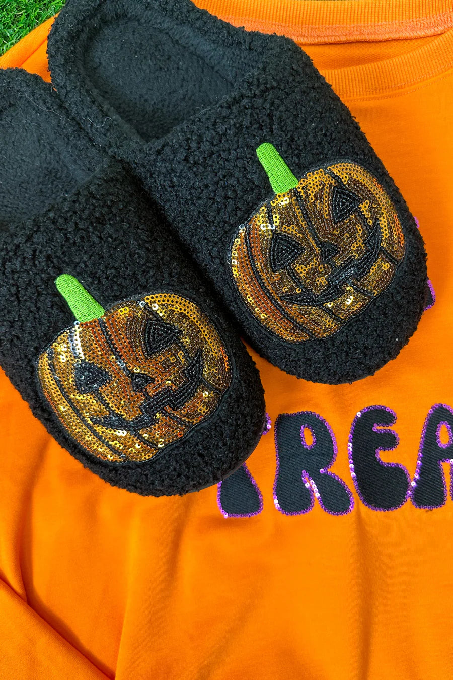 Bring spooky season straight to your toes with our Jack-o’-Cozy Slippers! Made with ultra-soft, fuzzy fabric, these slip-ons keep your feet warm and comfy while showing off sparkling sequin jack-o’-lanterns that light up your look—no candles required. Whether you’re sipping cider, carving pumpkins, or lounging through your latest scary movie marathon, these slippers add just the right mix of cozy and festive fun.