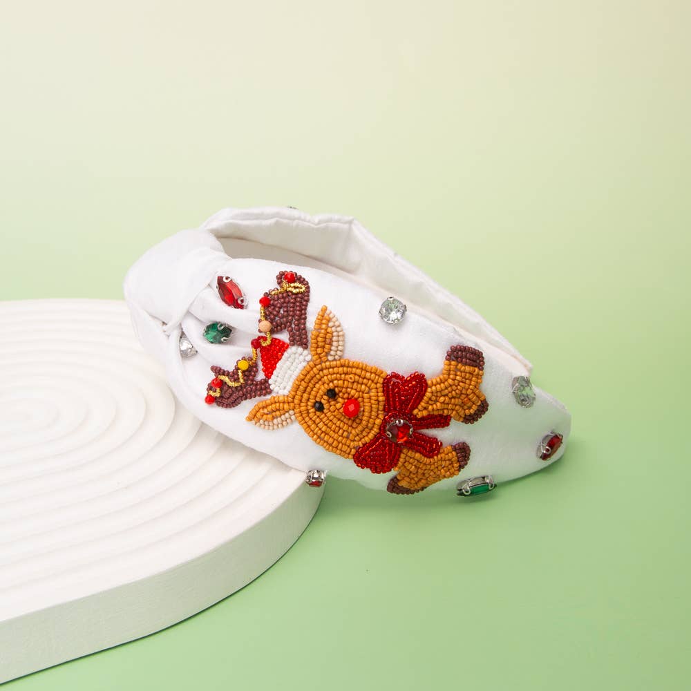 Jolly Reindeer Beaded Headband