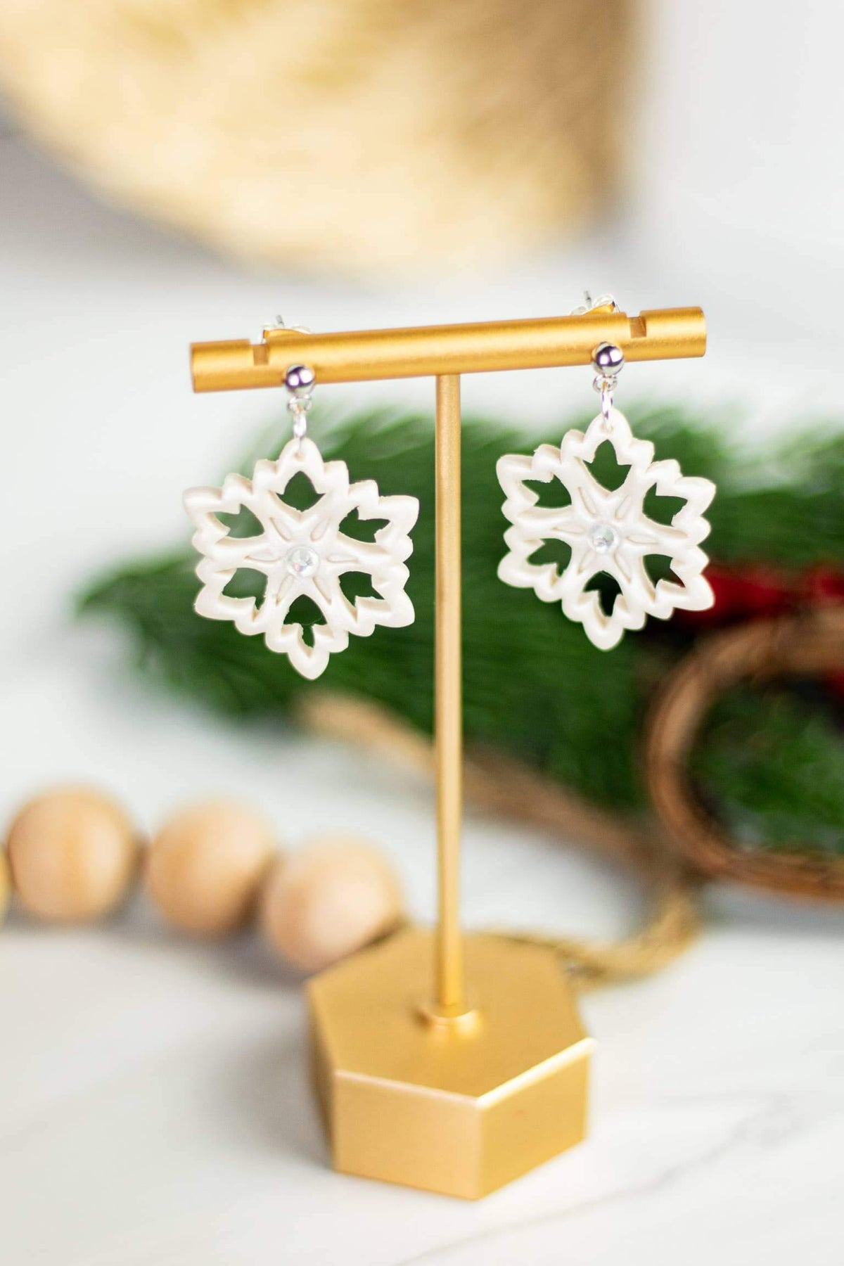 Add a little sparkle to your snow day style with our Frosted Flurry Earrings! These handmade polymer clay snowflakes feature a rhinestone center that catches the light like freshly fallen snow. Lightweight, elegant, and full of festive charm, they’re the perfect finishing touch for all your holiday outfits — from cozy sweater days to sparkling party nights. ✨