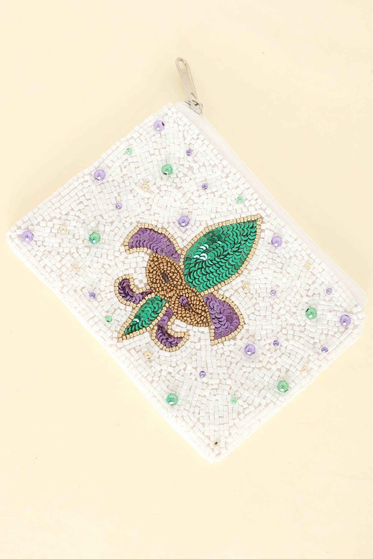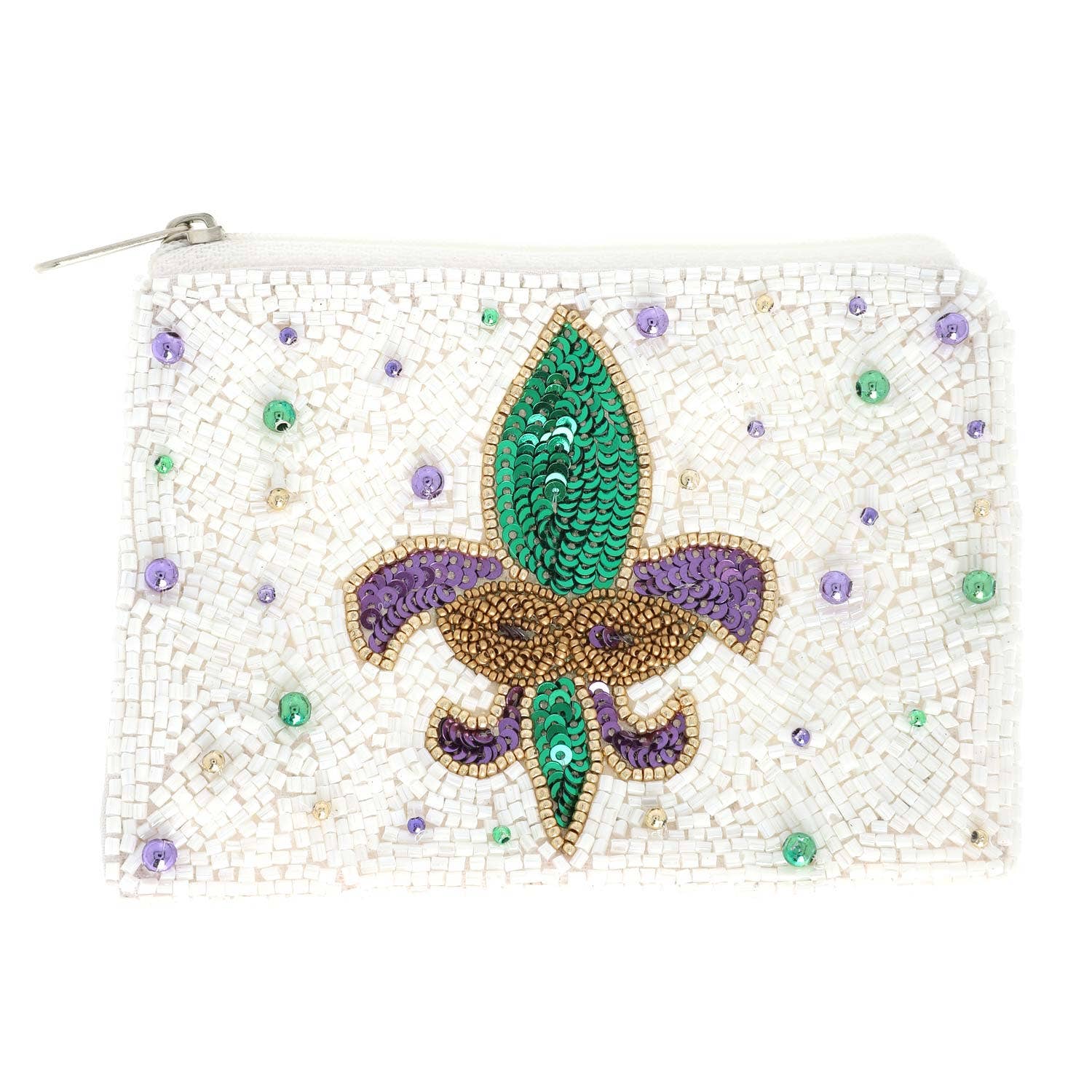 Add a little lagniappe to your Mardi Gras look with this dazzling Bourbon Street Beaded Coin Purse! Featuring a sparkling fleur-de-lis design crafted from colorful sequins and beads, this compact cutie is perfect for holding your cash, cards, and parade-day essentials.