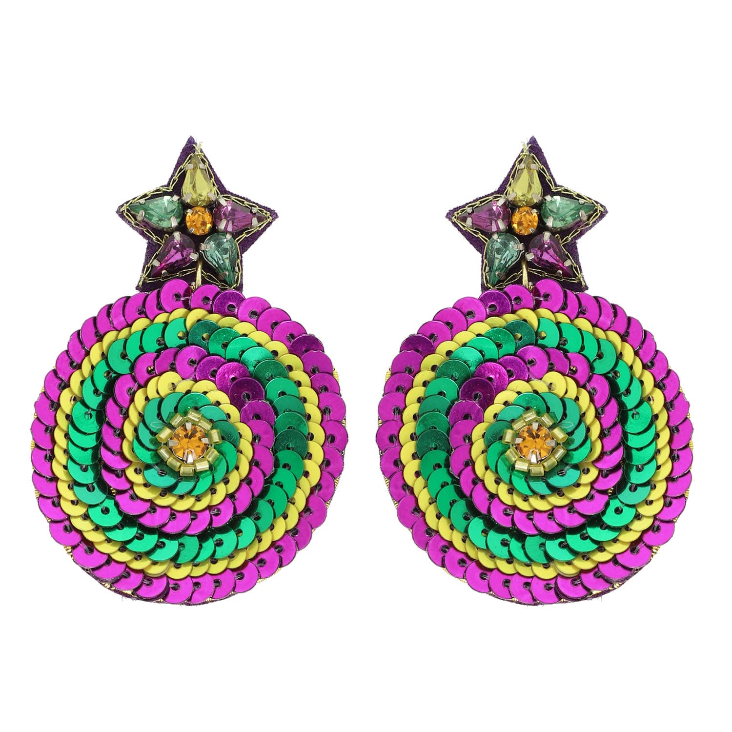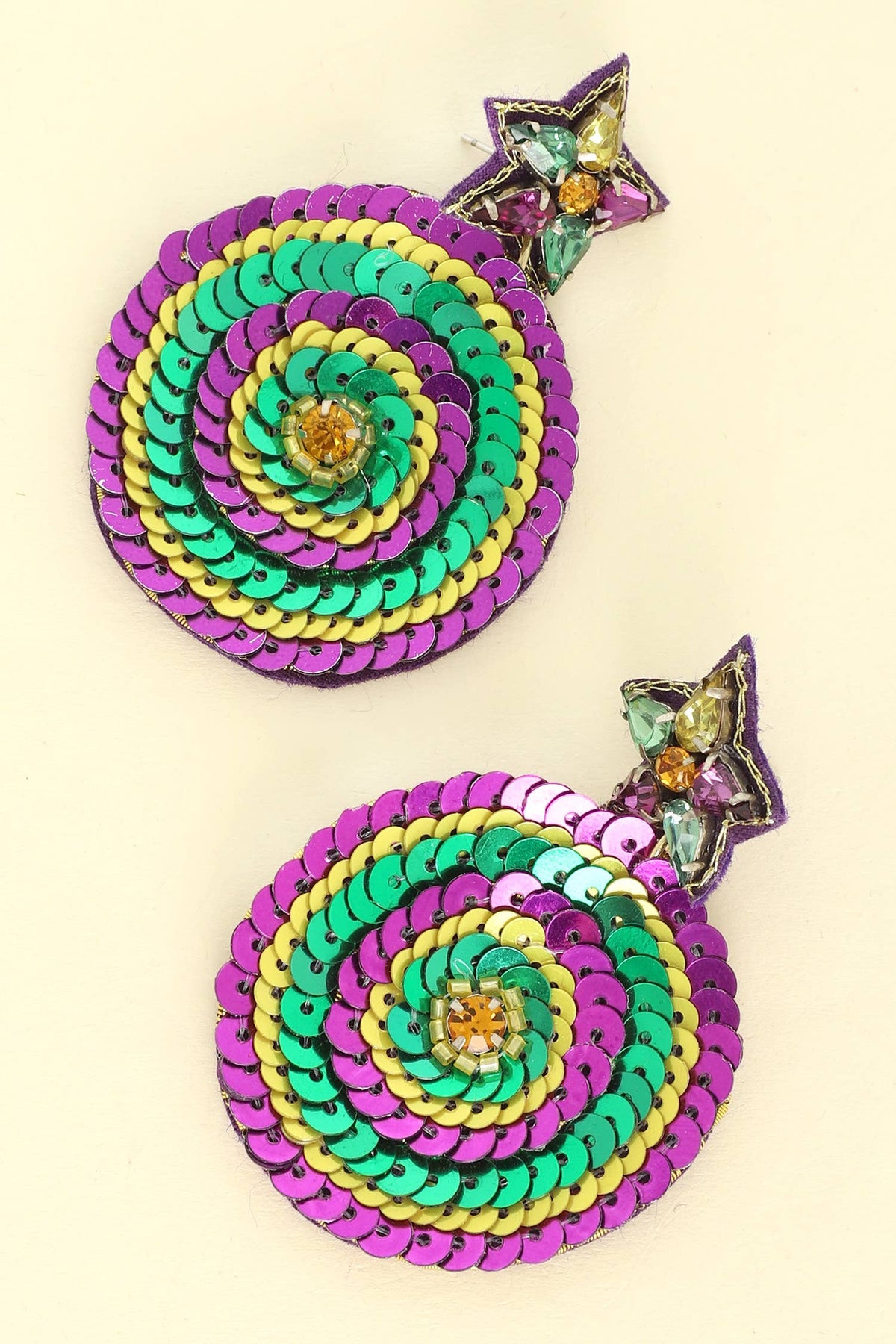 Shine brighter than the floats with these Let’s Roll Sequin Statement Earrings! Bursting with Mardi Gras energy, these colorful beauties feature swirling sequins in purple, green, and gold, topped with a jeweled star stud that adds the perfect touch of sparkle.