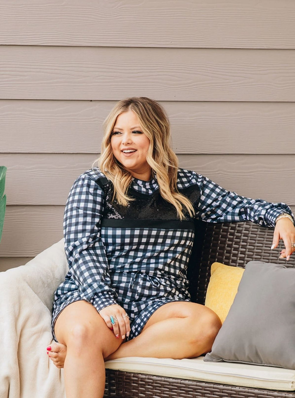 Stylin in Gingham Loungewear Set with Shorts and Sequins